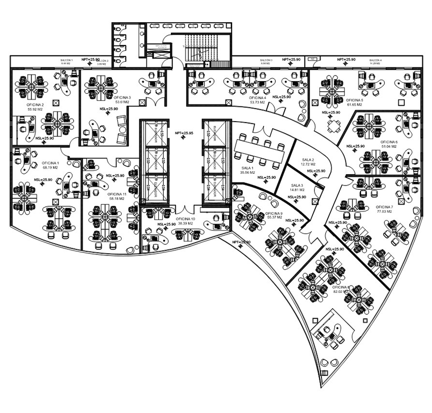 Las oficinas y los locales comerciales cuentan con 4 niveles ubicados al frente del edificio, brindándole al usuario un confort inigualable.